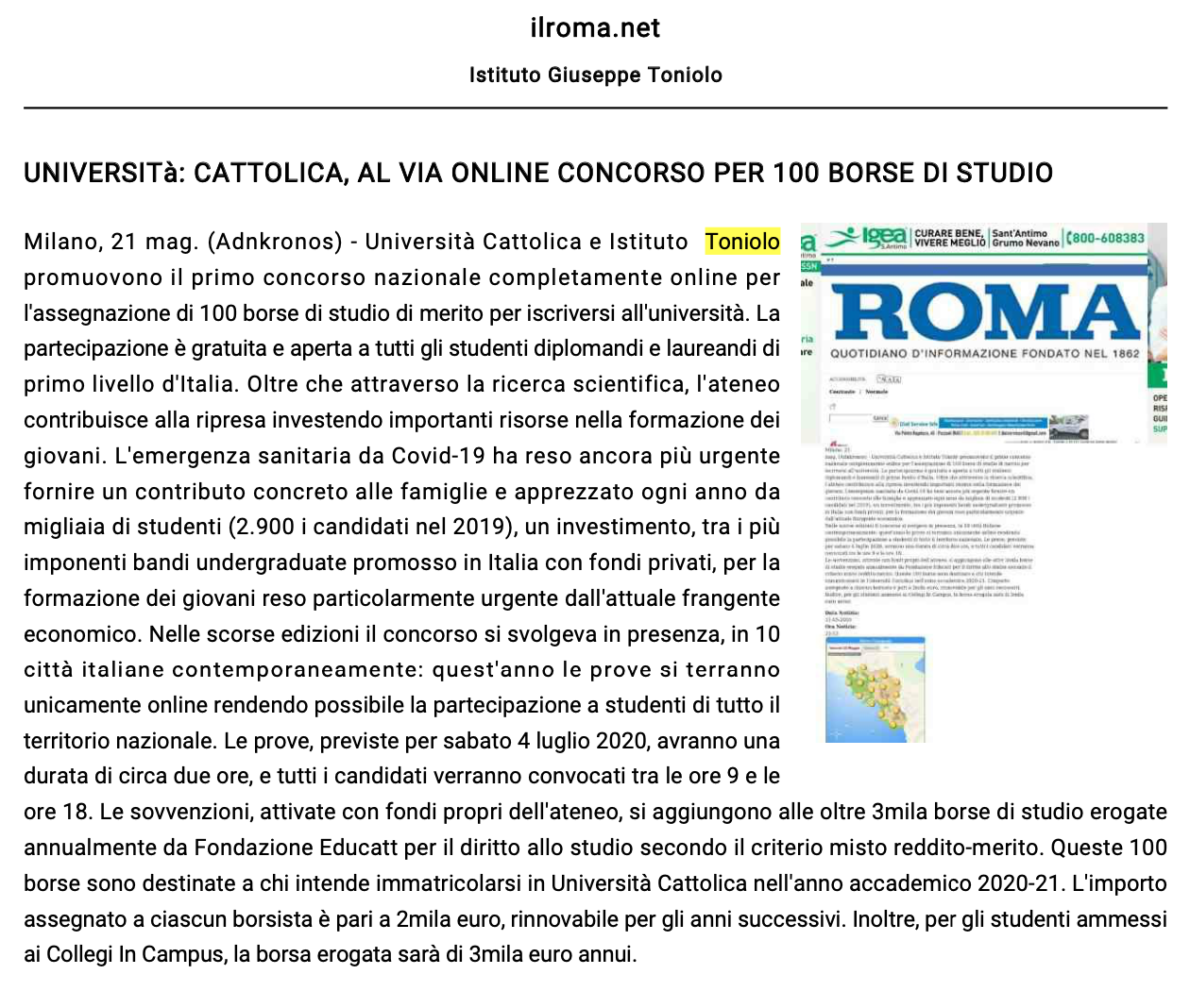 Il sostegno di Cattolica e Istituto Toniolo agli studenti